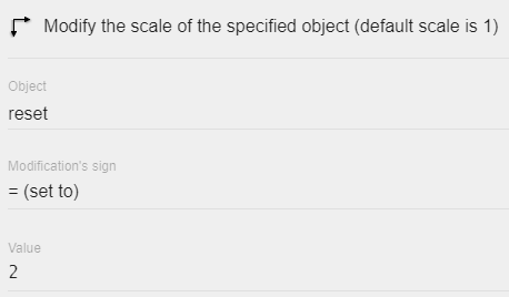 • Scaling of the object can be changed. There are three options: "Scale" (constrains proportions to scale on both X and Y axis), "Scale on X axis" (width), and "Scale on Y axis" (height).